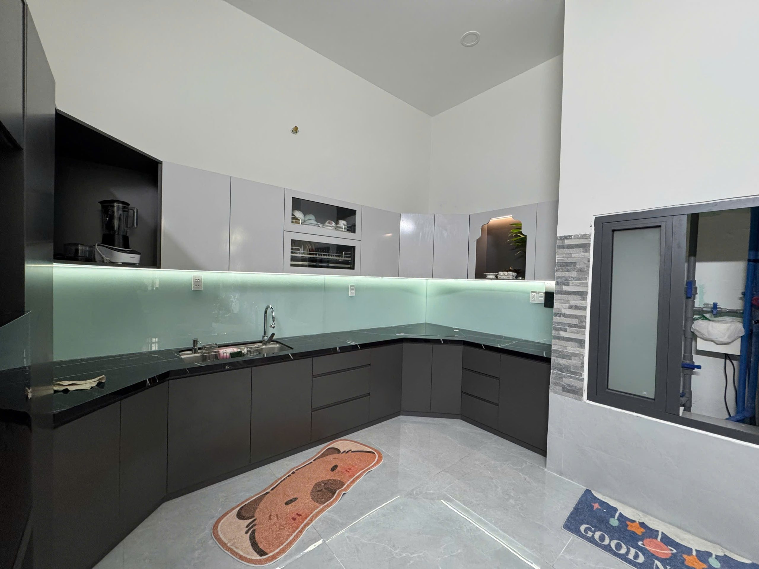 Tủ bếp dưới còn liên kết với thùng tủ lạnh, và tủ đồ khô. Giúp mở rộng, phân chia khu vực lưu trữ một cách gọn gàng, ngăn nắp.