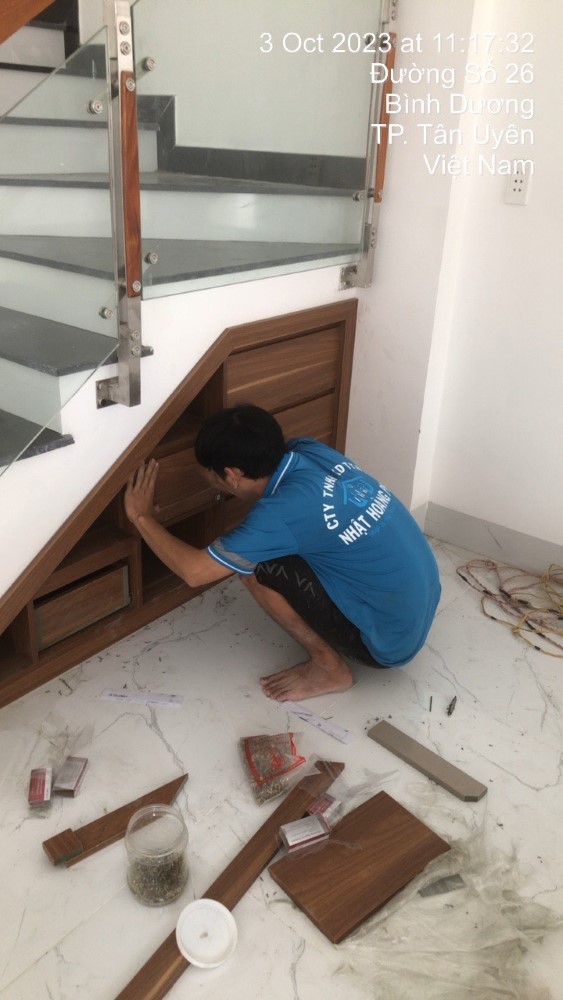 Tủ dưới cầu thang bộ hướng phòng bếp:
