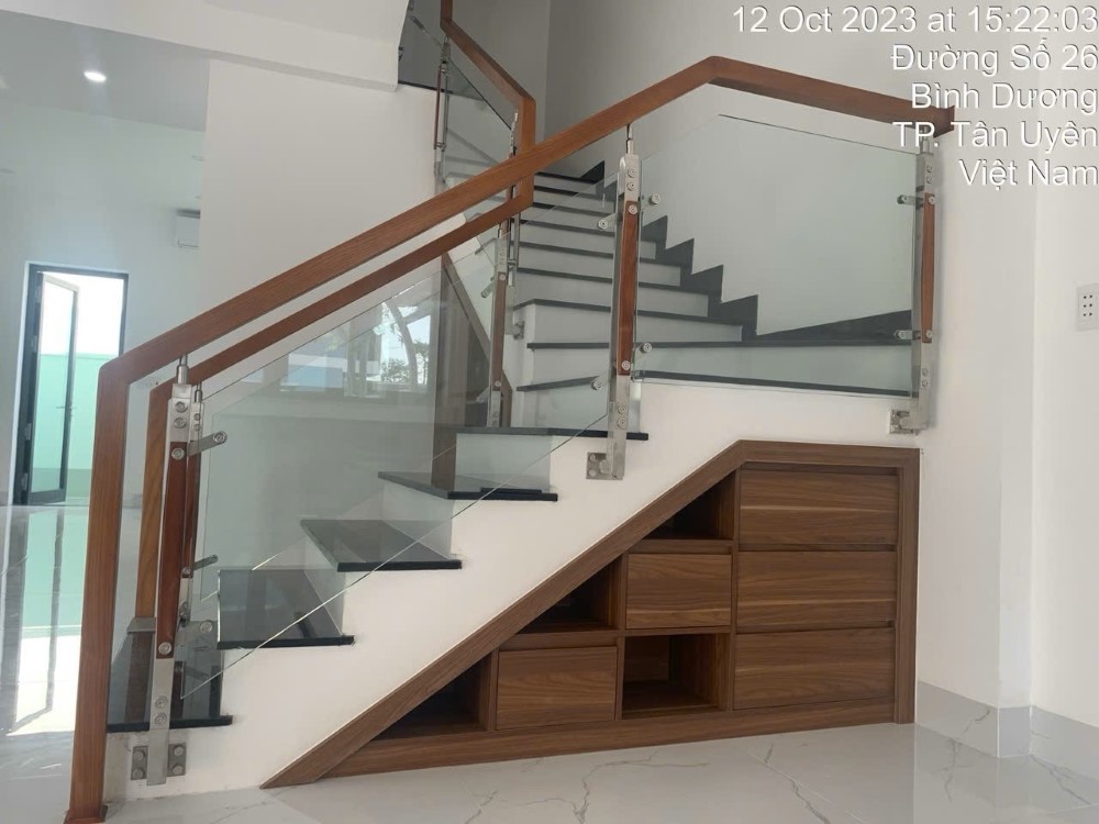 Tủ dưới cầu thang bộ hướng phòng khách: