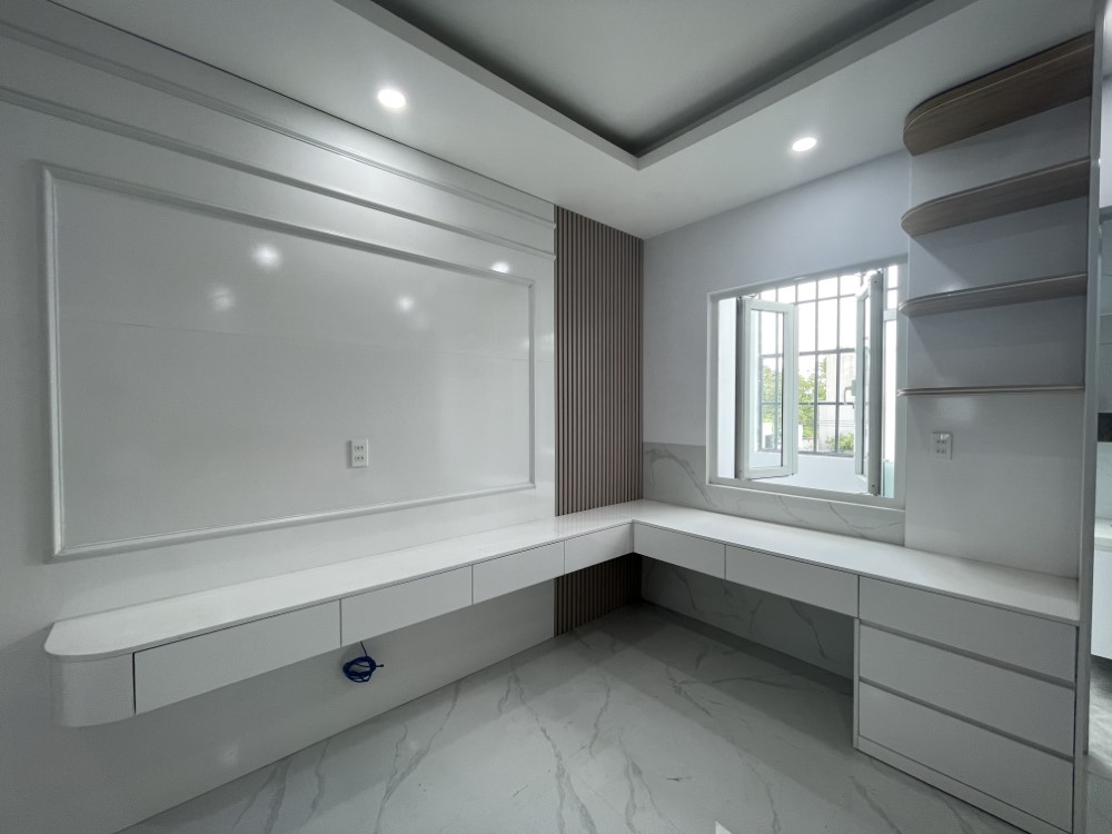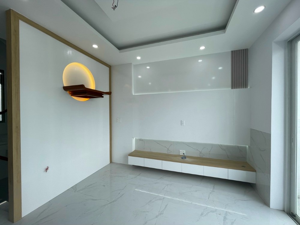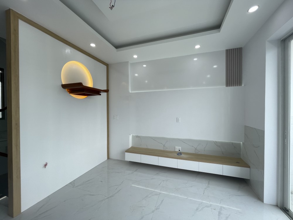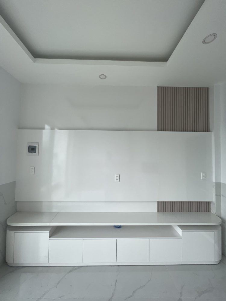 - Thay tấm trắng vân mây vách trang trí tiếp giáp kệ Tivi: