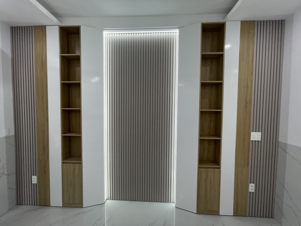- Khung xương tấm MDF chống ẩm, hoàn thiện bề mặt tấm PVC giả đá.