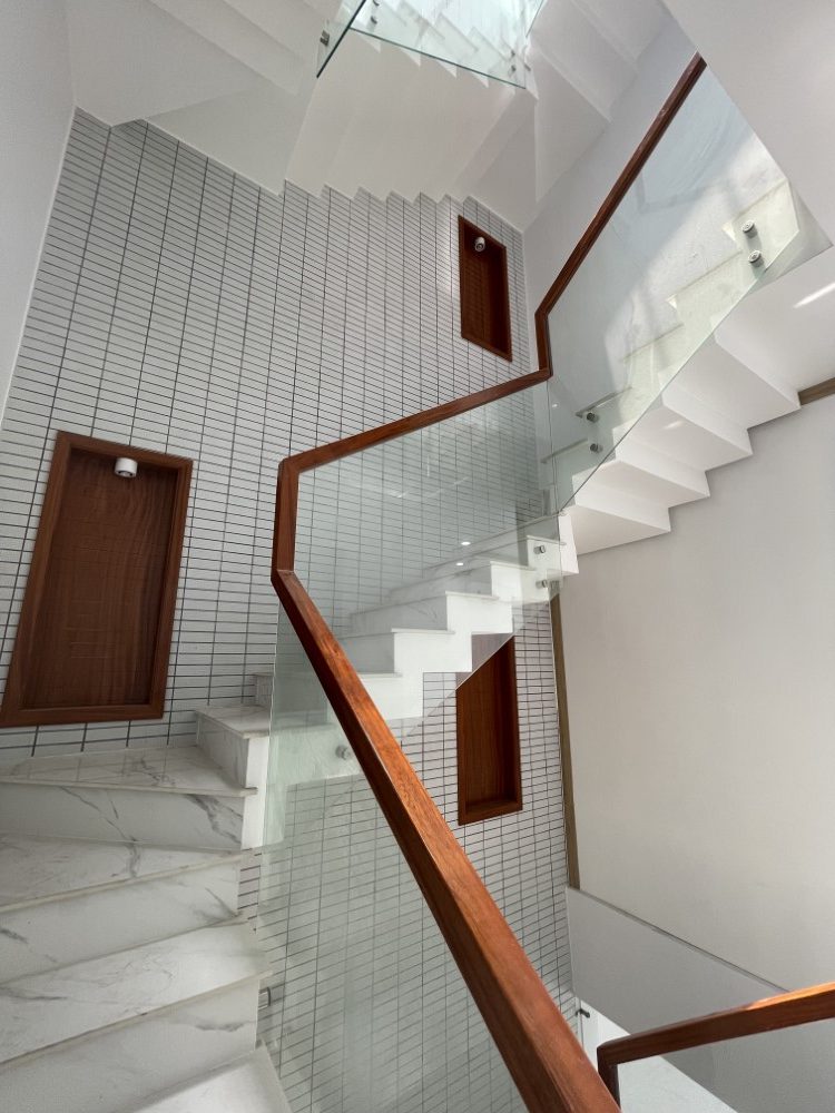 - Tủ giày dưới cầu thang bộ (hướng phòng khách và phòng bếp):