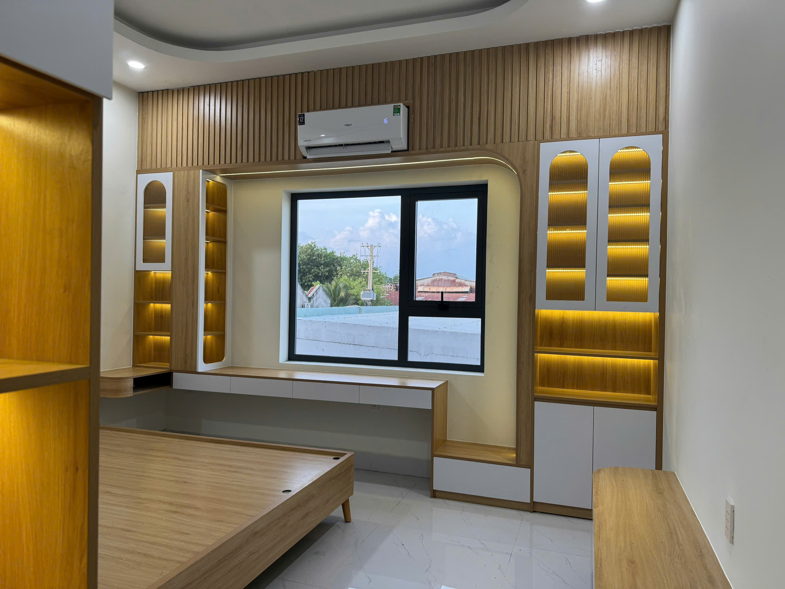 – Nội thất phòng ngủ: Giường + vách đầu giường, tủ quần áo, kệ Tv, bàn trang điểm, bàn làm việc, vách lam, tủ trang trí.